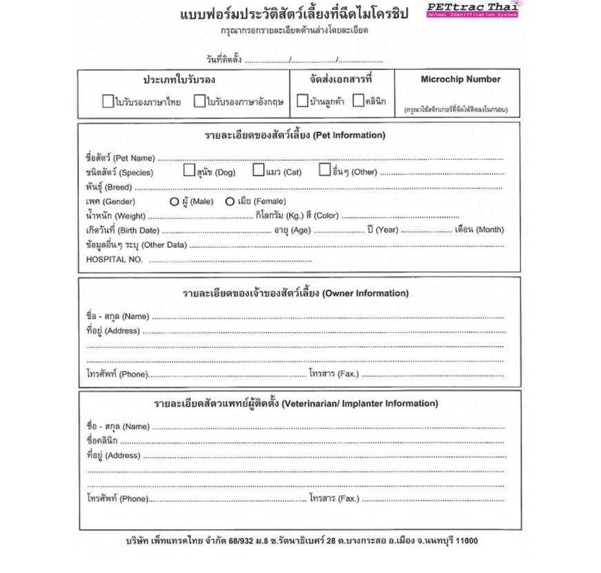 - ข้อมูลของเจ้าสุนัข ได้แก่ ชื่อ-สกุล ที่อยู่ที่สามารถติดต่อได้ และหมายเลขโทรศัพท์