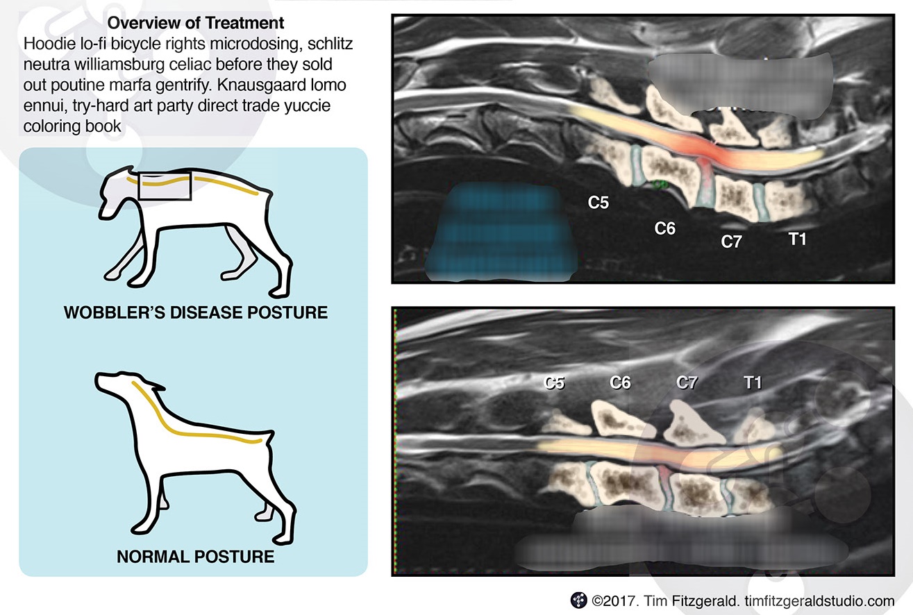 สามารถยืนยันการตรวจวินิจฉัยได้ด้วยการเอกซเรย์บริเวณกระดูกสันหลังส่วนคอ ซึ่งสามารถเห็นความผิดปกติของลักษณะกระดูกสันหลังได้จากการถ่ายภาพเอกซเรย์ นอกจากนี้สามารถถ่ายภาพเอกซเรย์ด้วยเทคนิคพิเศษได้ โดยการฉีดสารทึบรังสีเข้าไปในไขสันหลัง (myelogram) และสามารถตรวจวินิจฉัยยืนยันได้ด้วยการทำ CT scan หรือ MRI ได้ โดยจะช่วยให้เห็นส่วนของไขสันหลังที่เกิดความผิดปกติได้ ในหลาย ๆ กรณีหากมีการงอหรือเหยียดคอร่วมด้วยจะสามารถบอกถึงระดับความรุนแรงของการถูกกดของไขสันหลังได้ และสามารถพบการกดทับไขสันหลังแบบไดนามิกเช่นกัน โดยปกติสุนัขที่มีปัญหาการเรียงตัวของกระดูกสันหลังส่วนคอผิดปกติ จะพบการกดของไขสันหลังร่วมด้วย และมักพบในหลายตำแหน่งของกระดูกสันหลังส่วนคอ