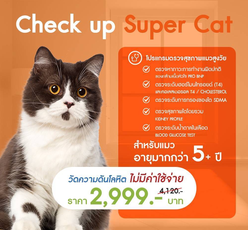 โปรแกรม CheckUp SuperCat คือคำตอบสำหรับเจ้าของที่รักแมว ที่ต้องการให้สัตว์เลี้ยงของตนได้รับการดูแลอย่างครบถ้วน ตั้งแต่การตรวจคัดกรองโรคหัวใจ ไต ระบบเผาผลาญ ไปจนถึงการให้คำแนะนำการดูแลเฉพาะบุคคลจากทีมสัตวแพทย์ของโรงพยาบาลสัตว์เศรษฐกิจสัตวแพทย์ (Setthakit Animal Hospital) โปรแกรมนี้ช่วยให้คุณรู้ล่วงหน้าถึงความเปลี่ยนแปลงภายในร่างกายแมว และสามารถวางแผนการดูแลแมวในทุกขั้นตอนได้อย่างถูกต้องและมีประสิทธิภาพ